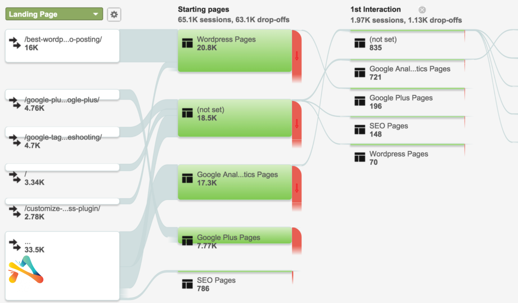- استفاده از content Drill Down در گوگل آنالیتیکز برای نشان دادن این که چگونه خوانندگان در وبسایت حرکت می کنند. این معلومات از آن جهت ارزشمند است که بر فرصتهای بهینه سازی محتوا تأکید می کند.