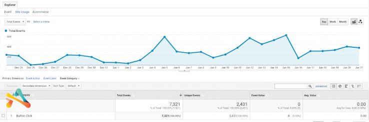 بعد از چند ماه بهینه سازی داخلی می توانم بهبودی بزرگ برای CTR و تولید لید روی سایتشان ببینم. اینجا یک عکس فوری از کلیکهای CTA در مورد سایت مشتری از صفحاتی است که بهینه کردم: